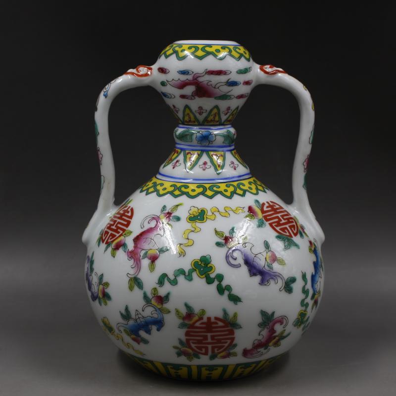 清乾隆年制粉彩福壽蒜頭如意瓶瓶粉彩精品家居擺仿古瓷器古董古玩1入