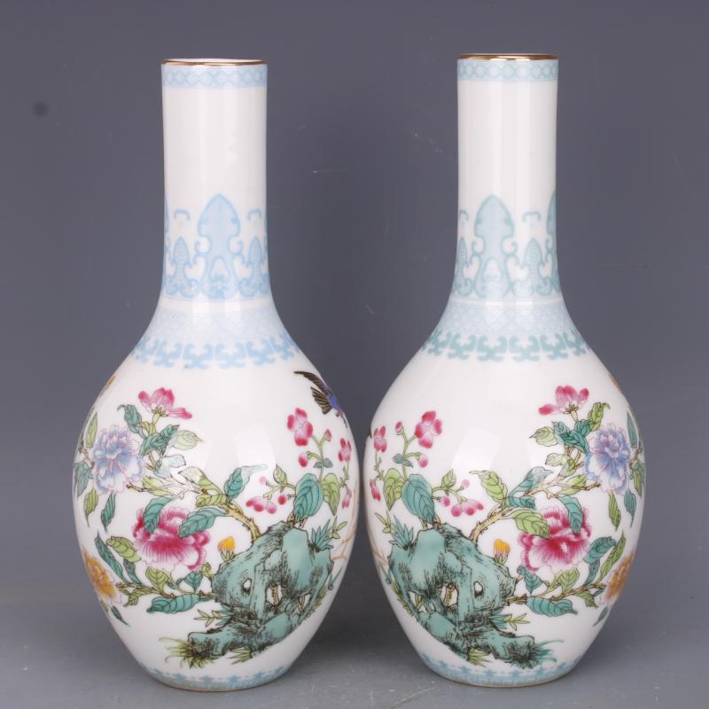 清乾隆描金粉彩富貴花鳥膽瓶一對仿古工藝瓷器家居擺件古玩收藏1入