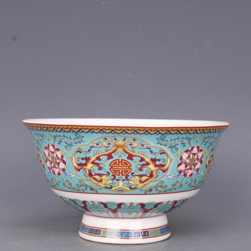 5寸清乾隆粉彩纏枝荷花紋碗仿古工藝品瓷器擺件餐具古董古玩收藏1入