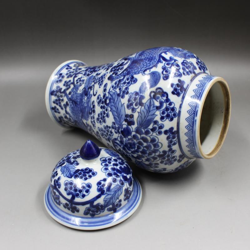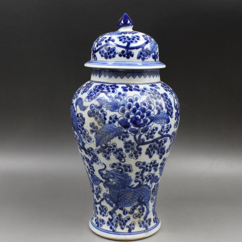 清康熙年制青花穿花麒麟紋將軍罐 仿古老貨瓷器擺件 古董古玩收藏1入