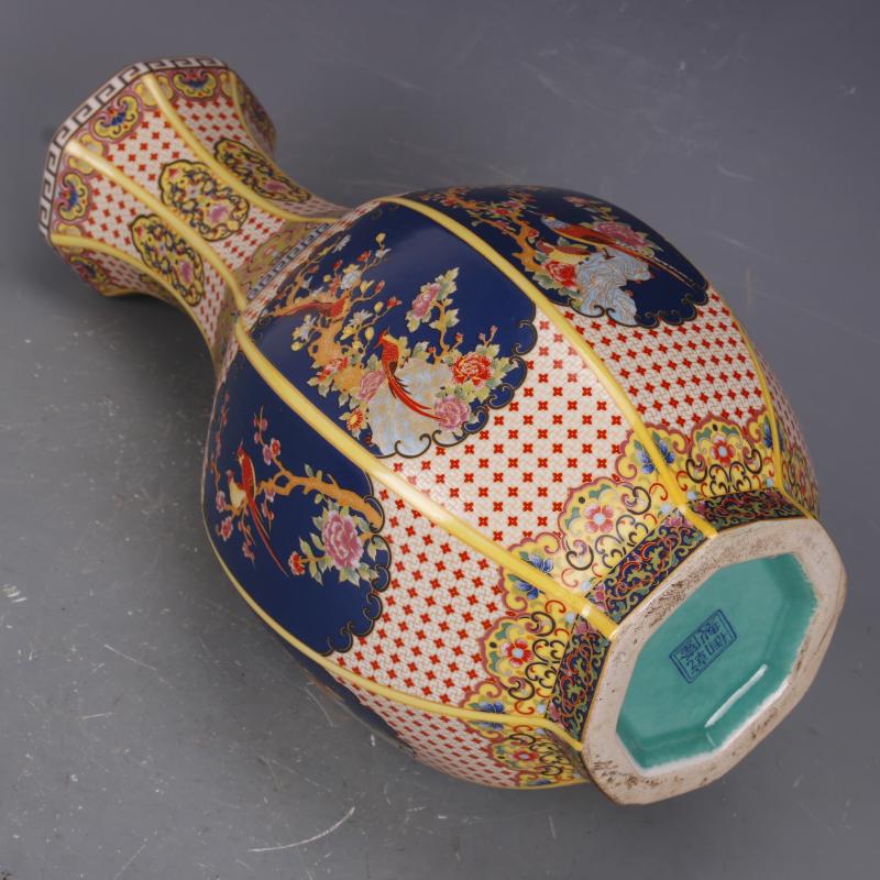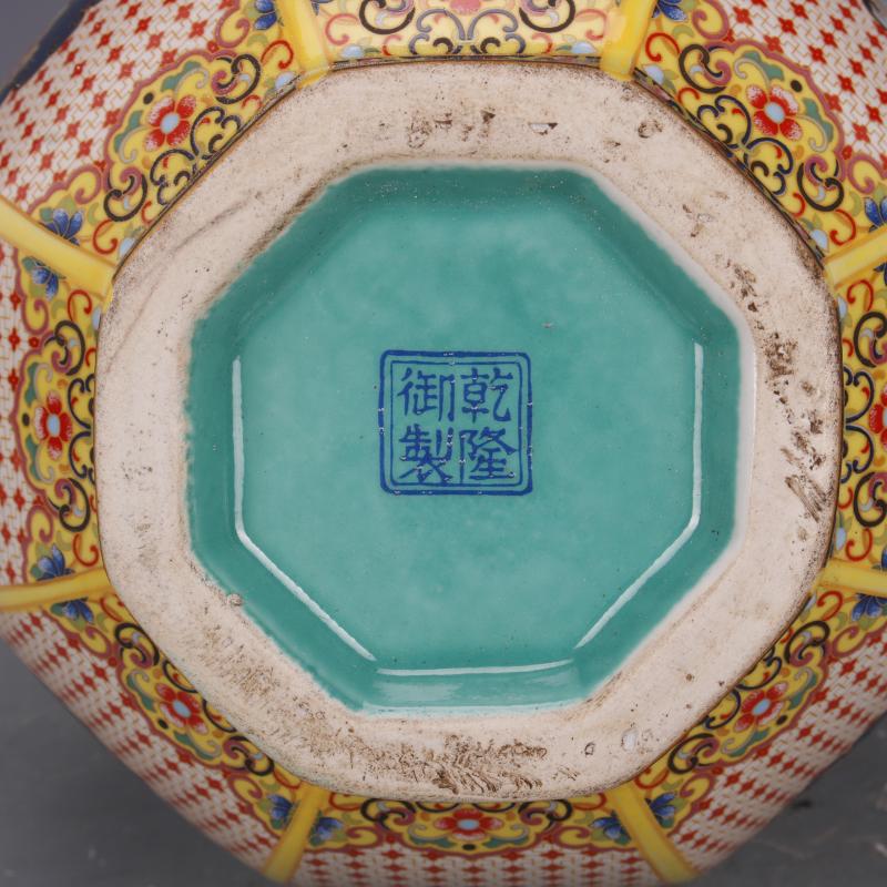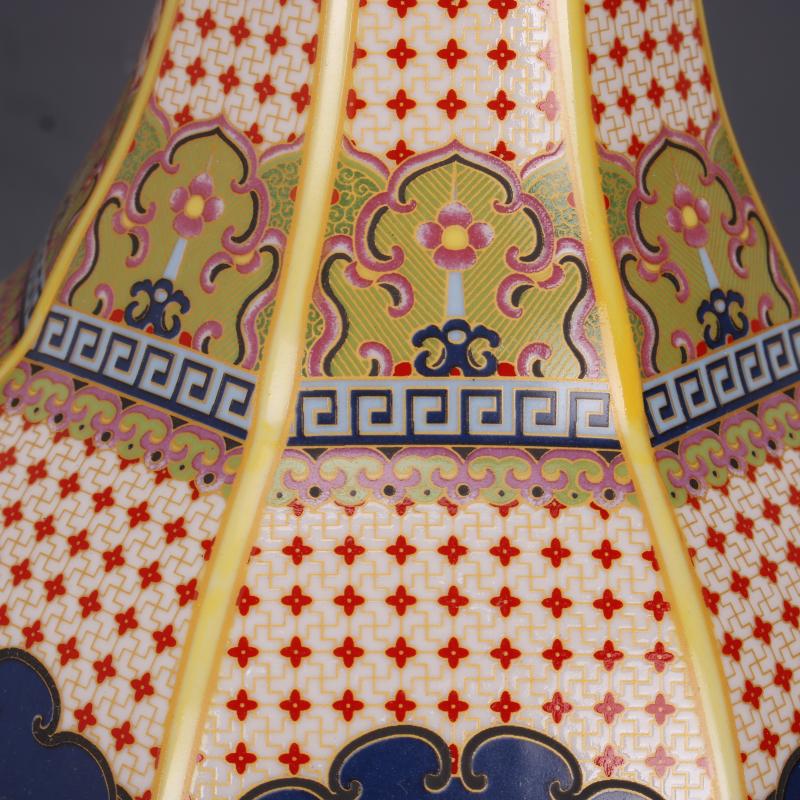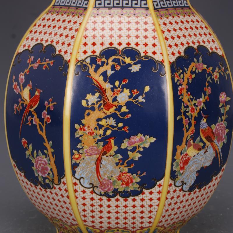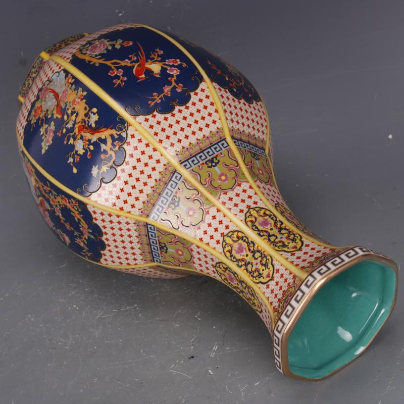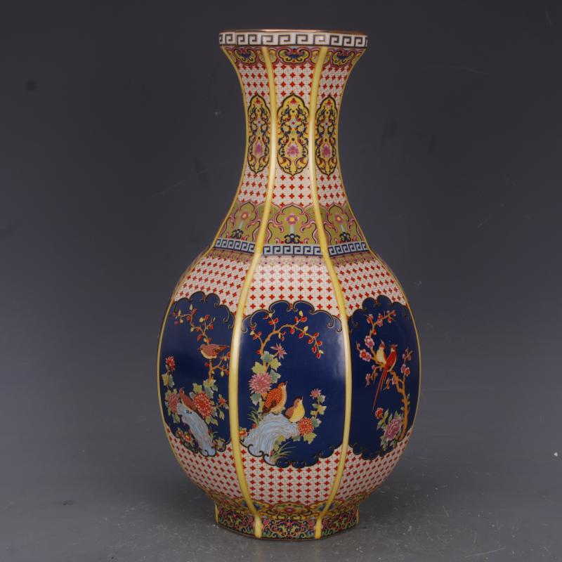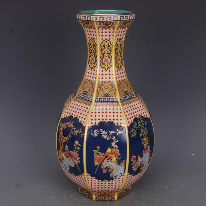 清乾隆琺瑯彩花鳥八方玉壺春瓶仿古工藝品瓷器家居中式古玩擺件1入