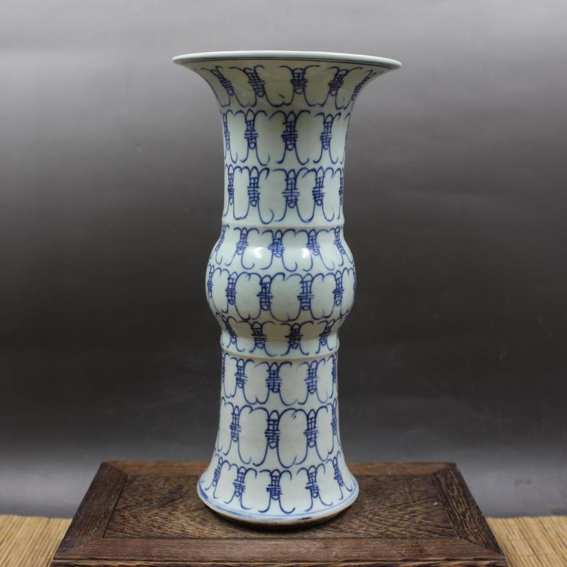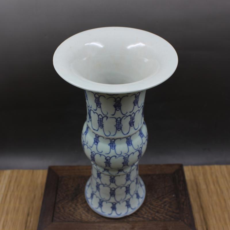 清康熙青花萬壽無疆花觚瓶 仿古出土家居酒店瓷器擺件 古玩收藏1入