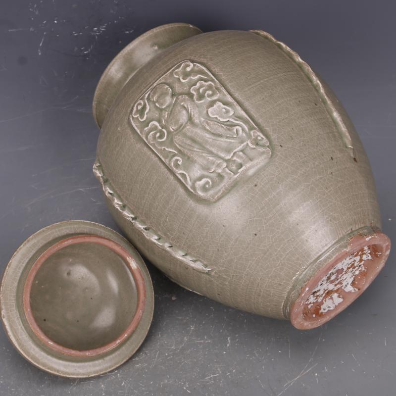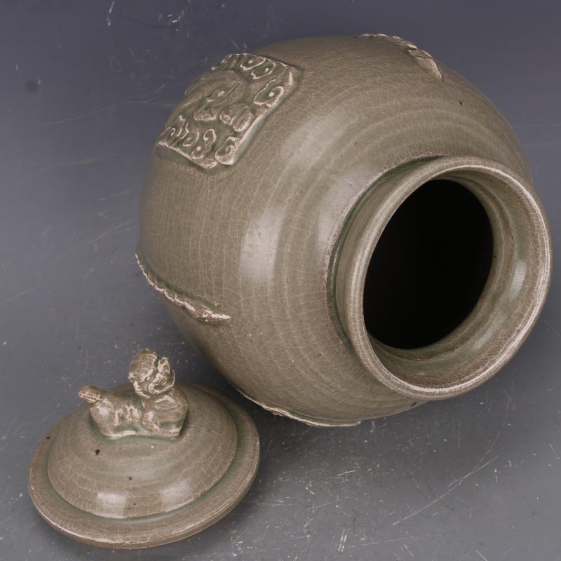 西晉越窯浮雕刻人物狗頭罐 全手工仿古老貨瓷器擺件 古董古玩收藏1入