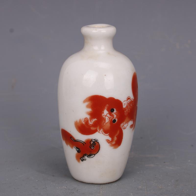 清雍正粉彩獅子紋鼻煙壺仿古工藝品老貨瓷器家居擺件古董古玩收藏1入
