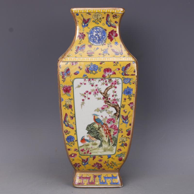 清乾隆描金琺瑯彩花鳥四方花瓶仿古瓷器家居中式擺件古董古玩收藏1入