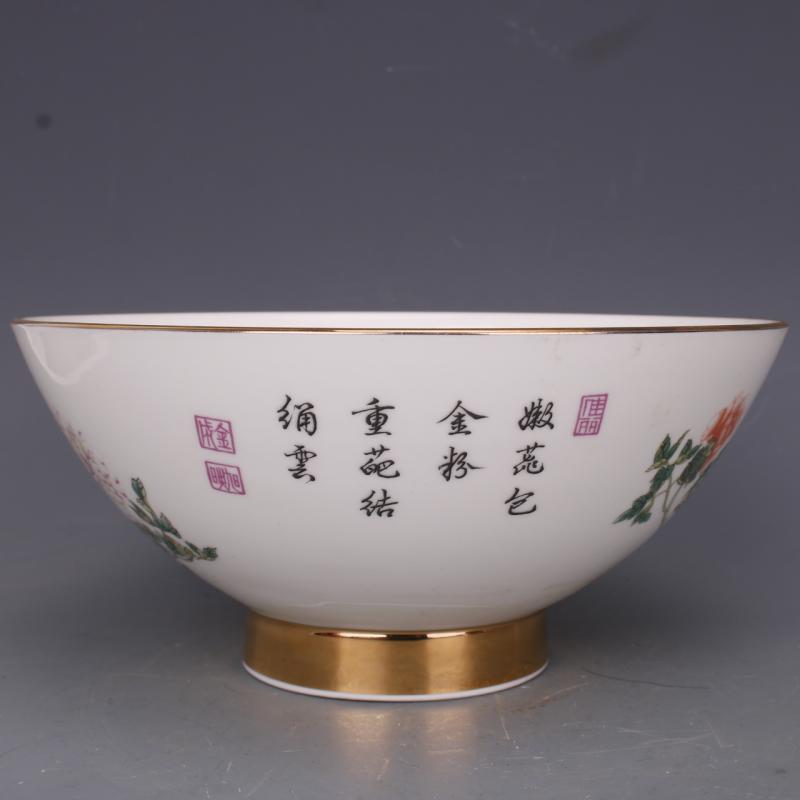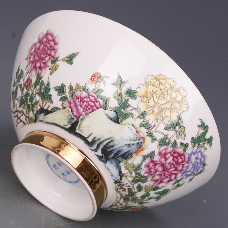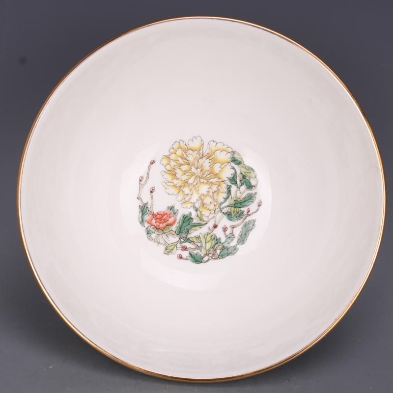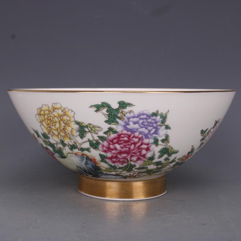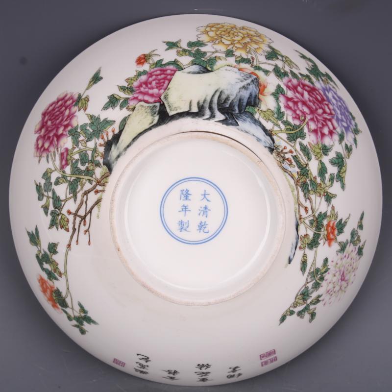 清乾隆粉彩牡丹花紋面碗7寸仿古工藝瓷器家居中式具擺件古玩老收1入