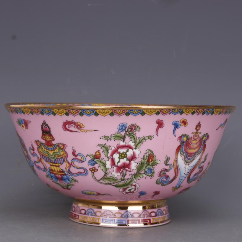 清乾隆粉彩八寶花紋面碗6寸仿古工藝瓷器家居餐具擺件古玩老收藏1入