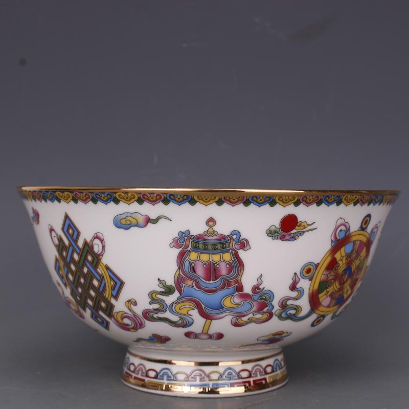 [4]清乾隆粉彩八寶花紋面碗6寸仿古工藝瓷器家居餐具擺件古玩老收藏1入