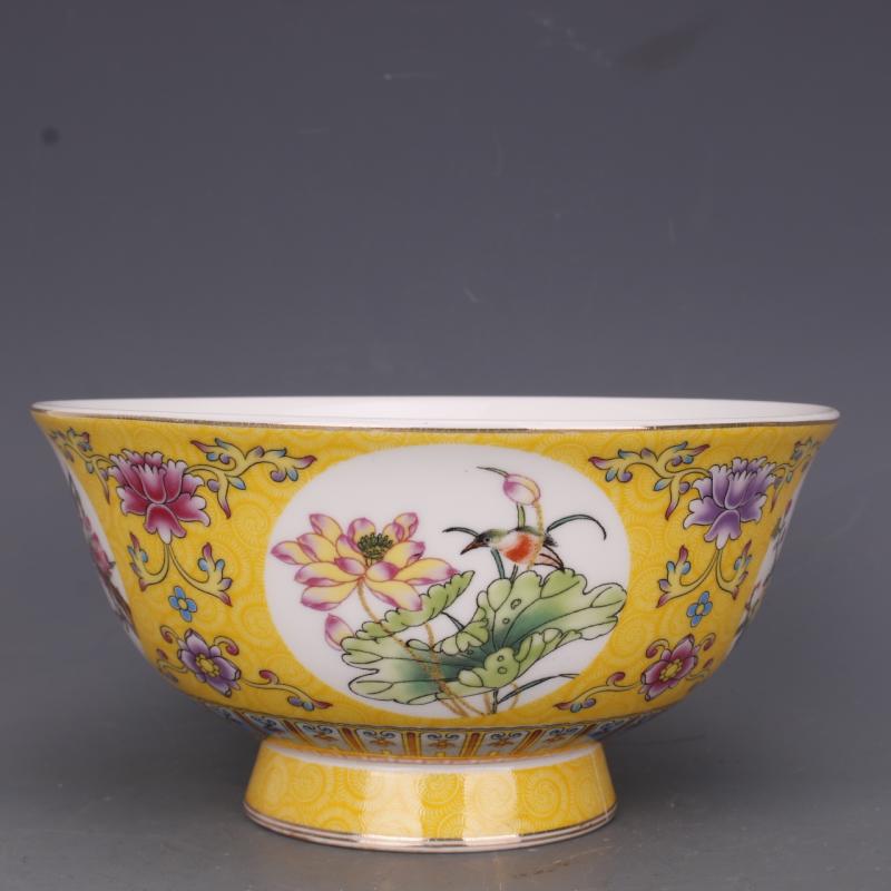 清乾隆粉彩四季花紋面碗6寸仿古工藝瓷器家居餐具擺件古玩老收藏1入