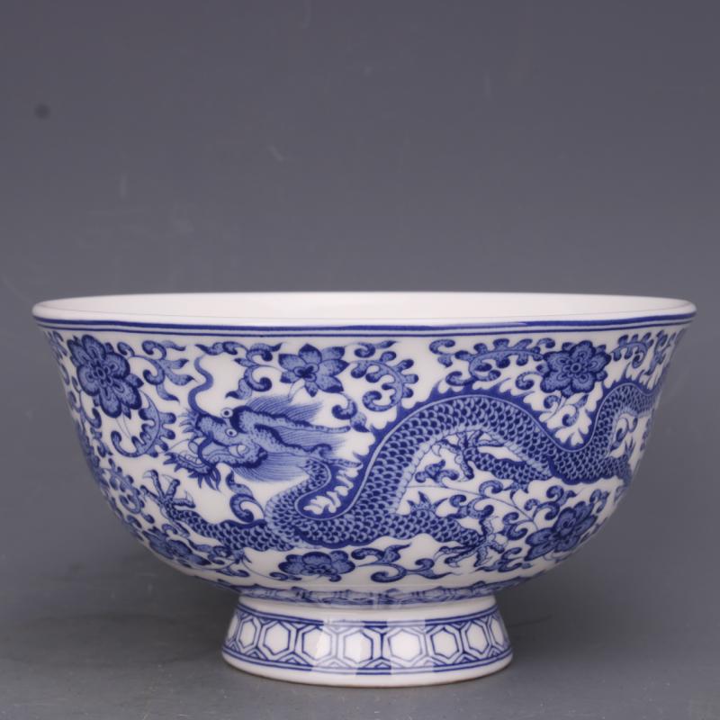 清乾隆青花穿花龍紋面碗6寸仿古工藝瓷器家居餐具擺件古玩老收藏1入