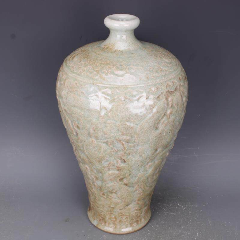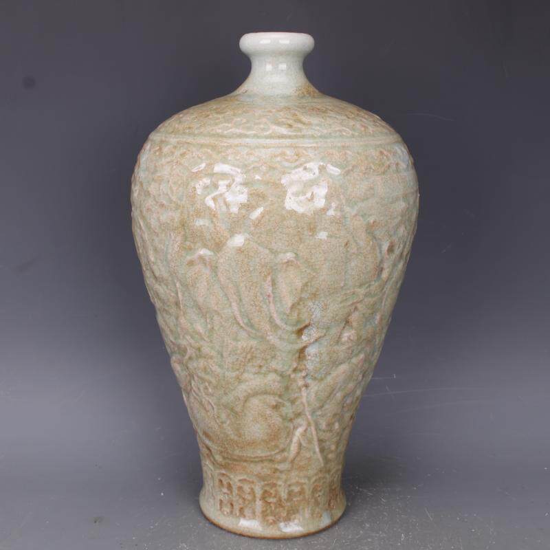 明龍泉窯浮雕刻人物梅瓶仿古老貨瓷器家居中式古董古玩擺件收藏1入