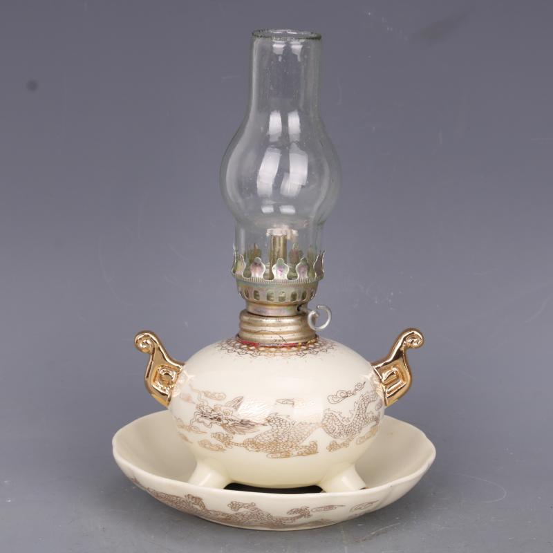民國粉彩龍紋煤油燈老貨包老中式家居用品擺件影視道具古玩瓷器1入