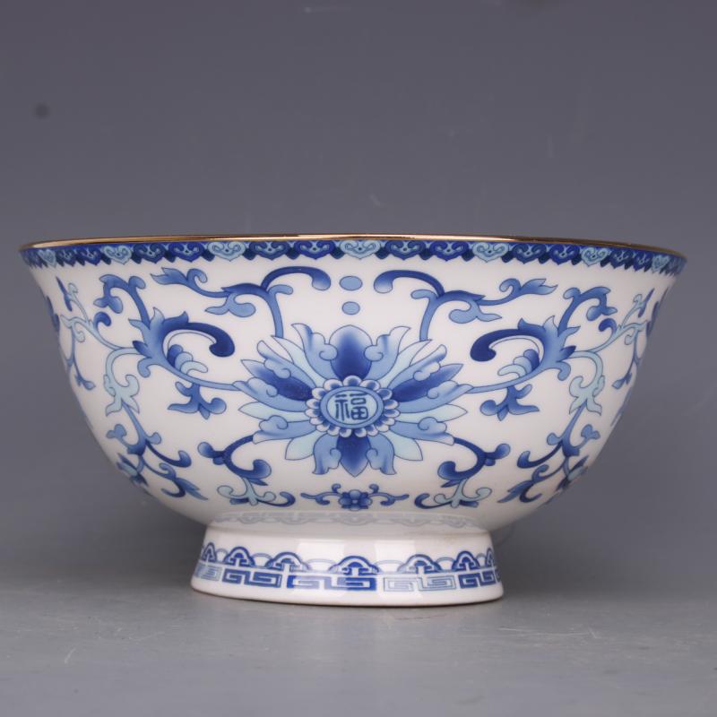 [4]清乾隆粉彩纏枝花紋面碗6寸仿古工藝瓷器家居餐具擺件古玩老收藏1入