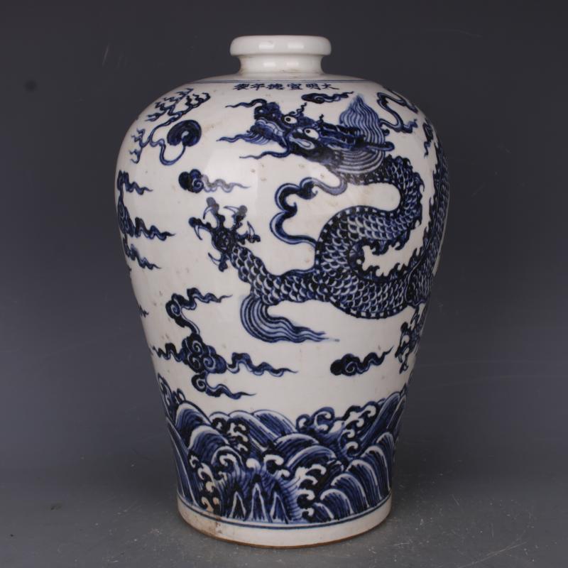 明宣德青花云龍紋梅瓶手繪仿古老貨瓷器家居中式客廳擺件古玩收藏1入