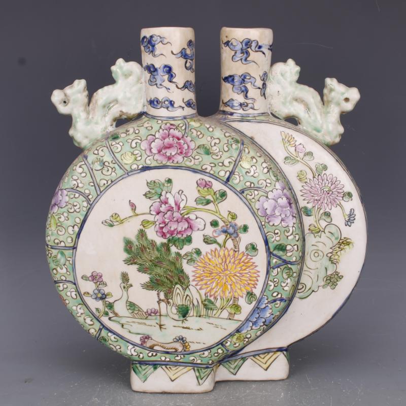 [2]清道光粉彩花紋雙抱胎抱月瓶手繪仿古老貨瓷器家居中式古玩擺件1入