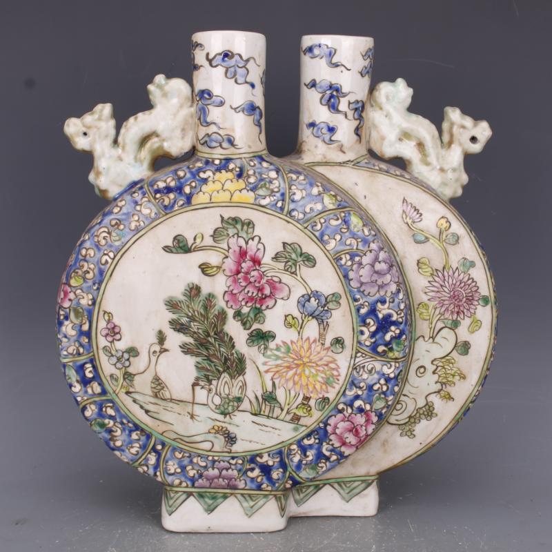 清道光粉彩花紋雙抱胎抱月瓶手繪仿古老貨瓷器家居中式古玩擺件1入
