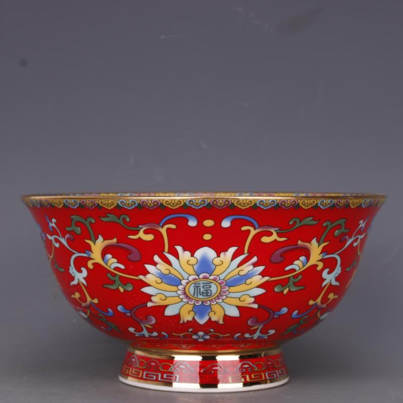 清乾隆粉彩纏枝花紋面碗6寸仿古工藝瓷器家居餐具擺件古玩老收藏1入