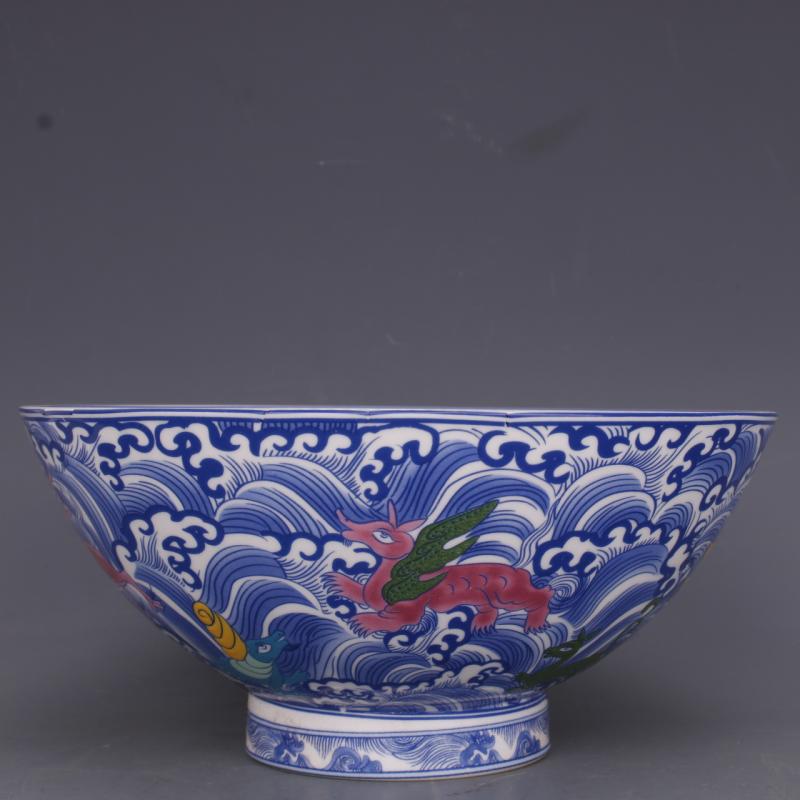 清乾隆粉彩海水獸紋面碗7寸仿古工藝瓷器家居餐具擺件古玩老收藏1入