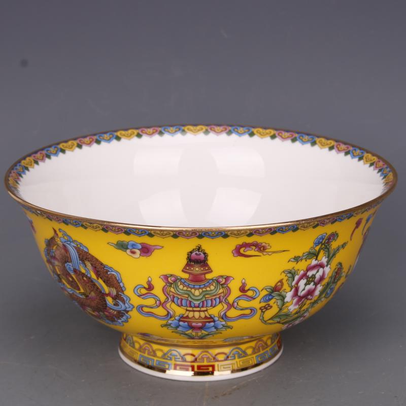 清乾隆粉彩八寶花紋面碗6寸仿古工藝瓷器家居餐具擺件古玩老收藏1入