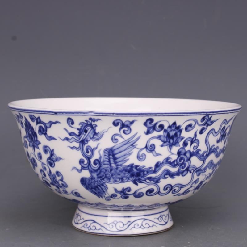 清乾隆青花穿花龍鳳紋面碗6寸仿古工藝瓷器家居餐具擺件古玩收藏1入