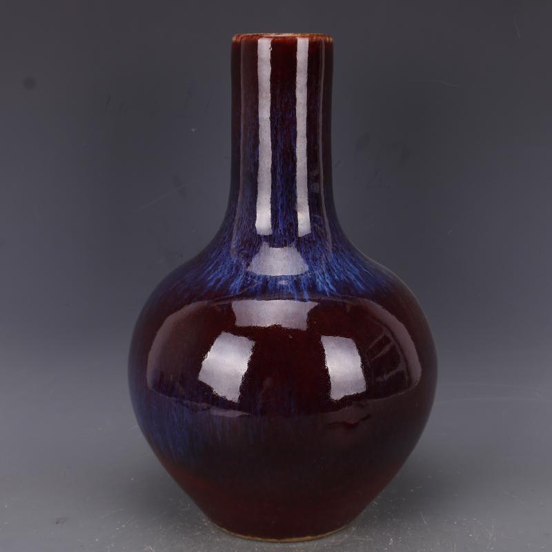 清雍正郎紅釉天球瓶手工仿古老貨瓷器家居裝飾中式擺件古董古玩1入