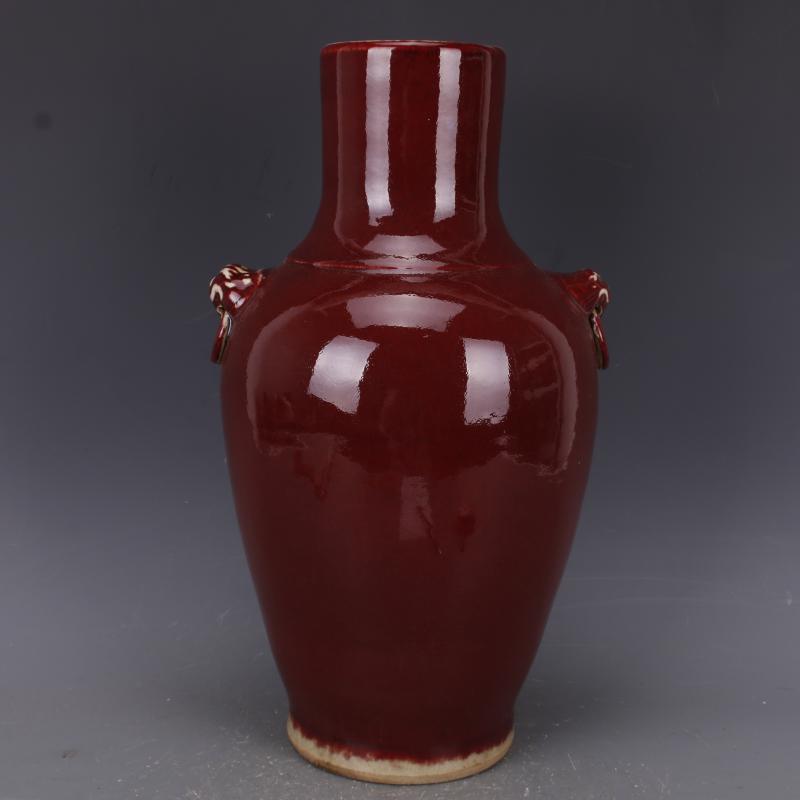 清雍正郎紅釉狗頭觀音瓶仿古老貨瓷器家居酒店擺件古董古玩老貨1入
