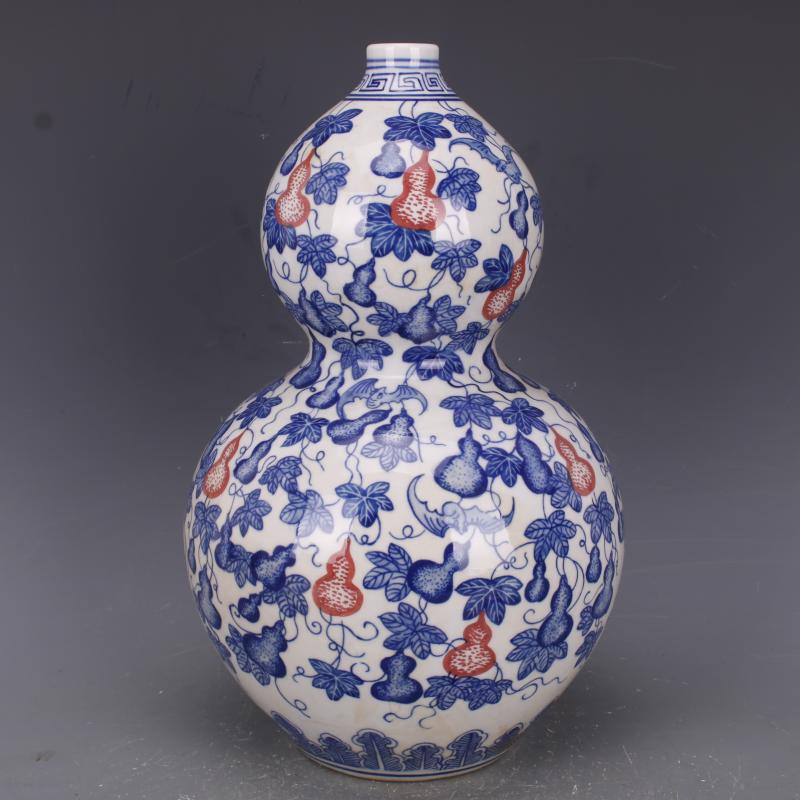 清乾隆青花釉里紅福壽葫蘆紋葫蘆瓶仿古老貨瓷器家居中式擺件古玩1入