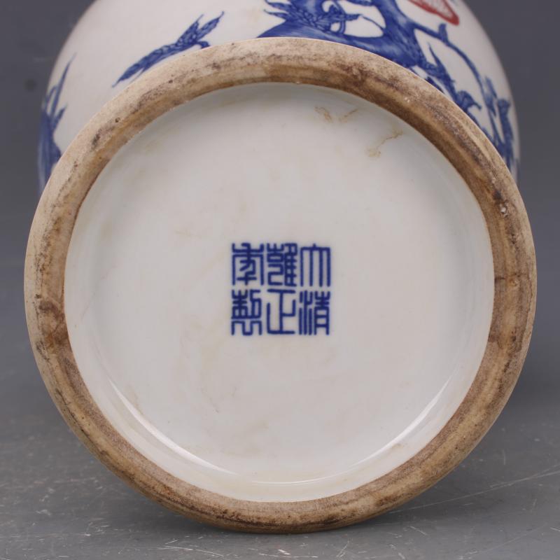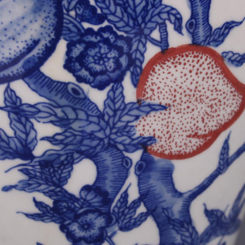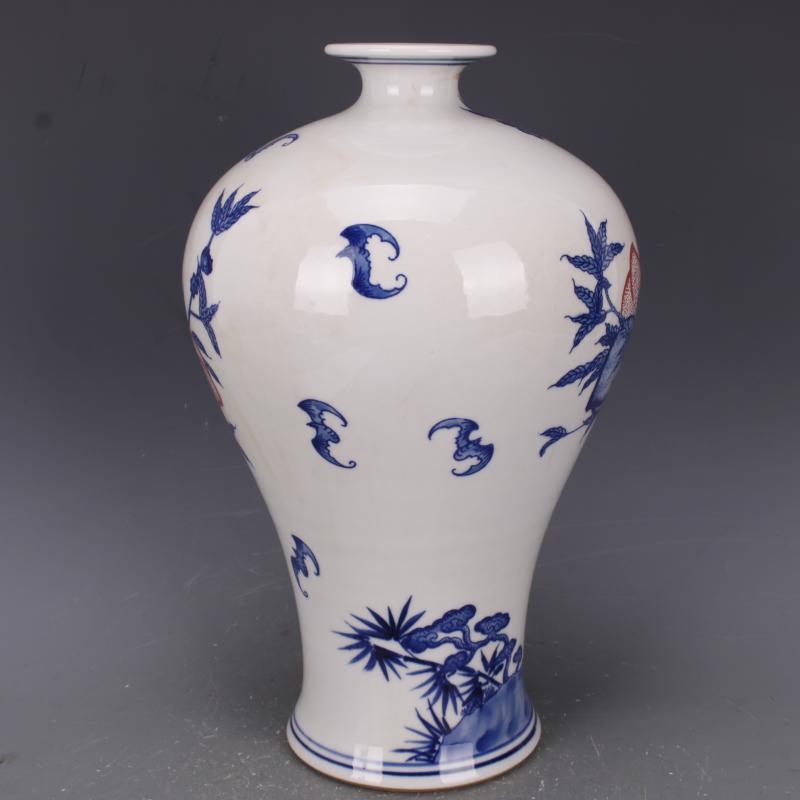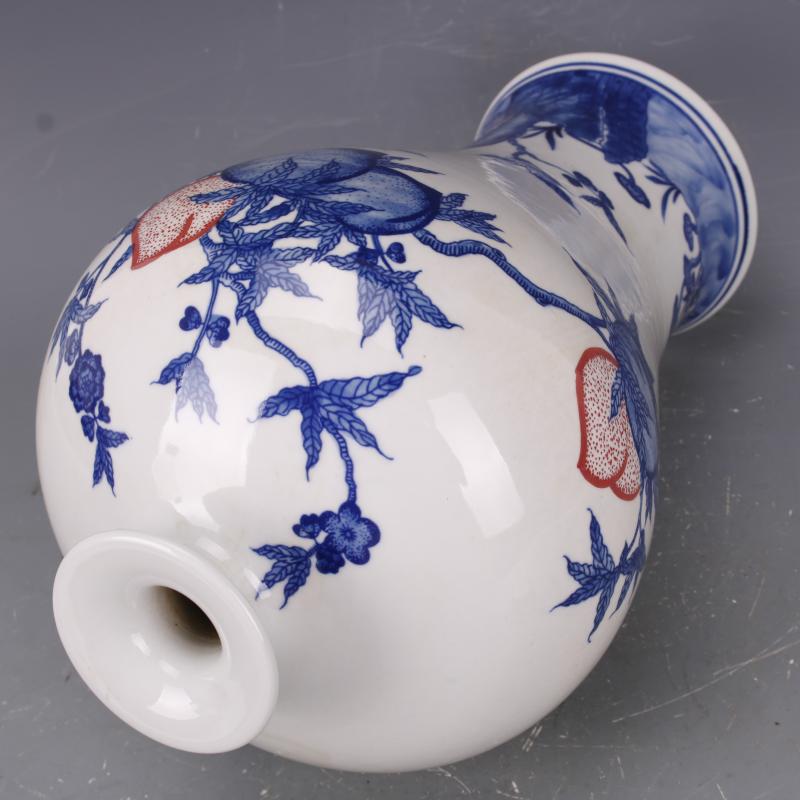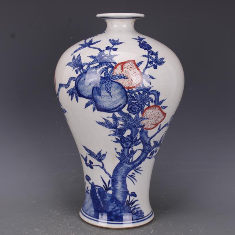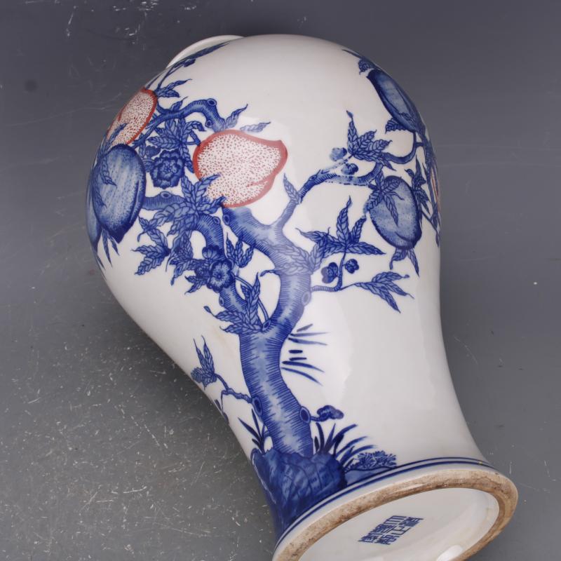 清乾隆青花釉里紅福壽九桃紋梅瓶仿古老貨瓷器家居中式擺件古玩1入