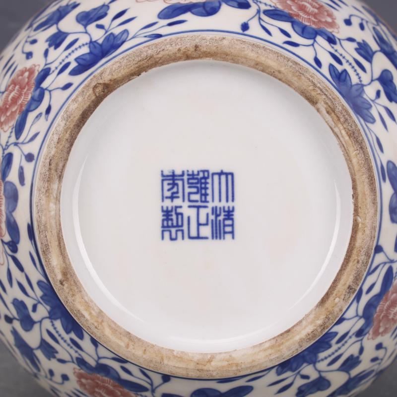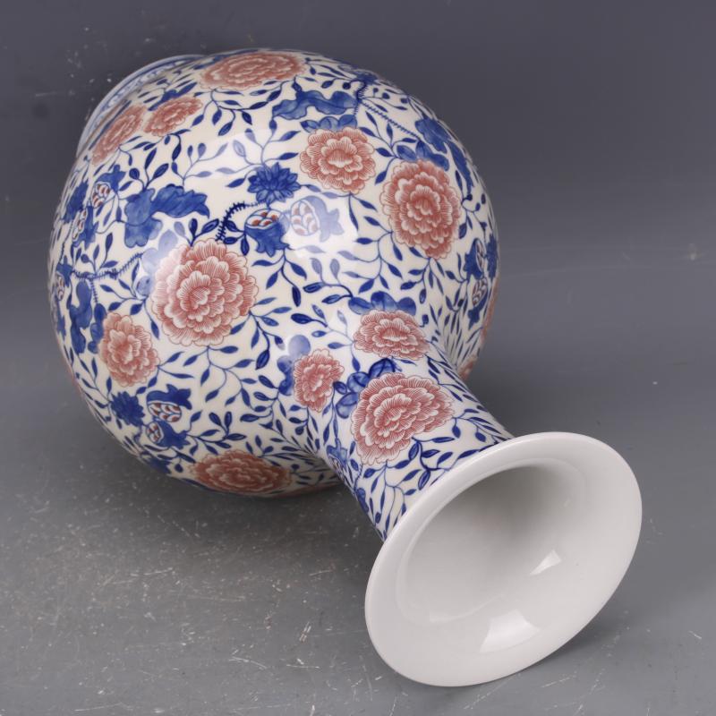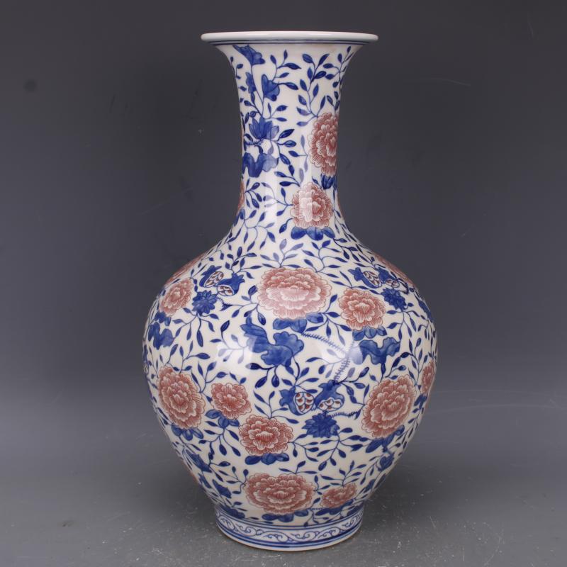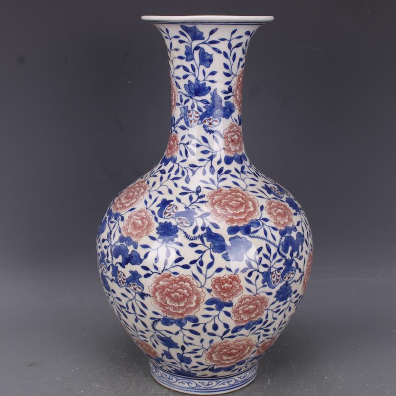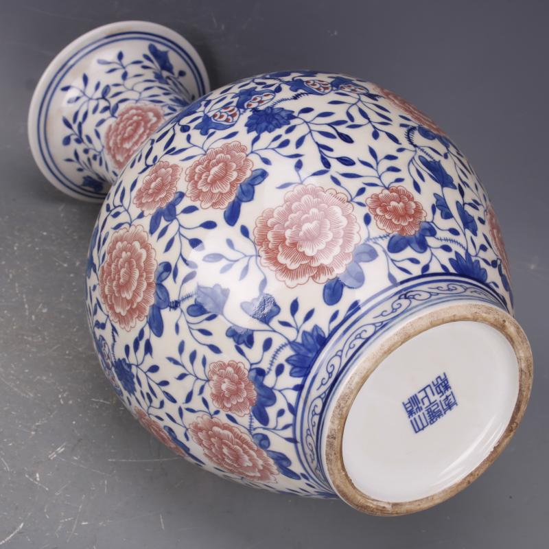 清乾隆青花釉里紅纏枝蓮紋賞瓶仿古老貨瓷器家居中式擺件古玩收藏1入