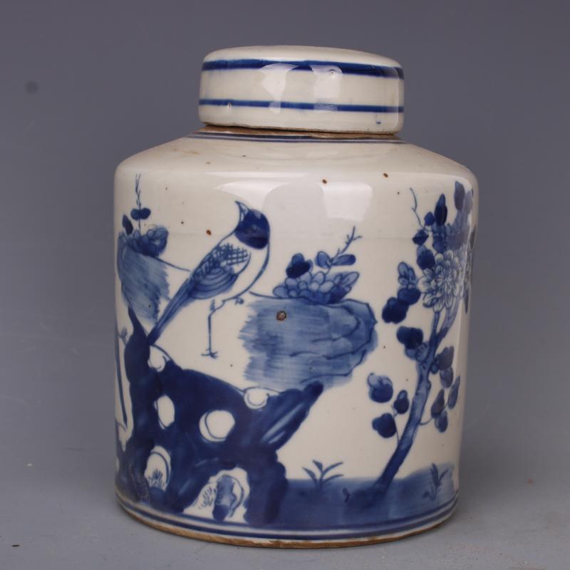 清光緒青花花鳥茶葉罐仿古老貨瓷器家居中式擺件古董古玩博古收藏1入