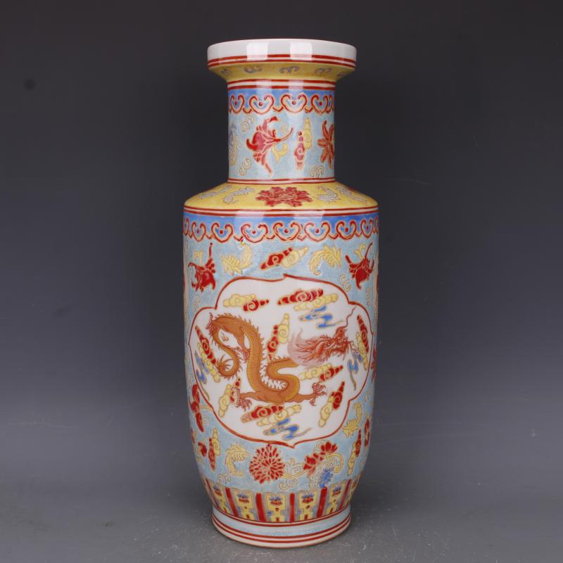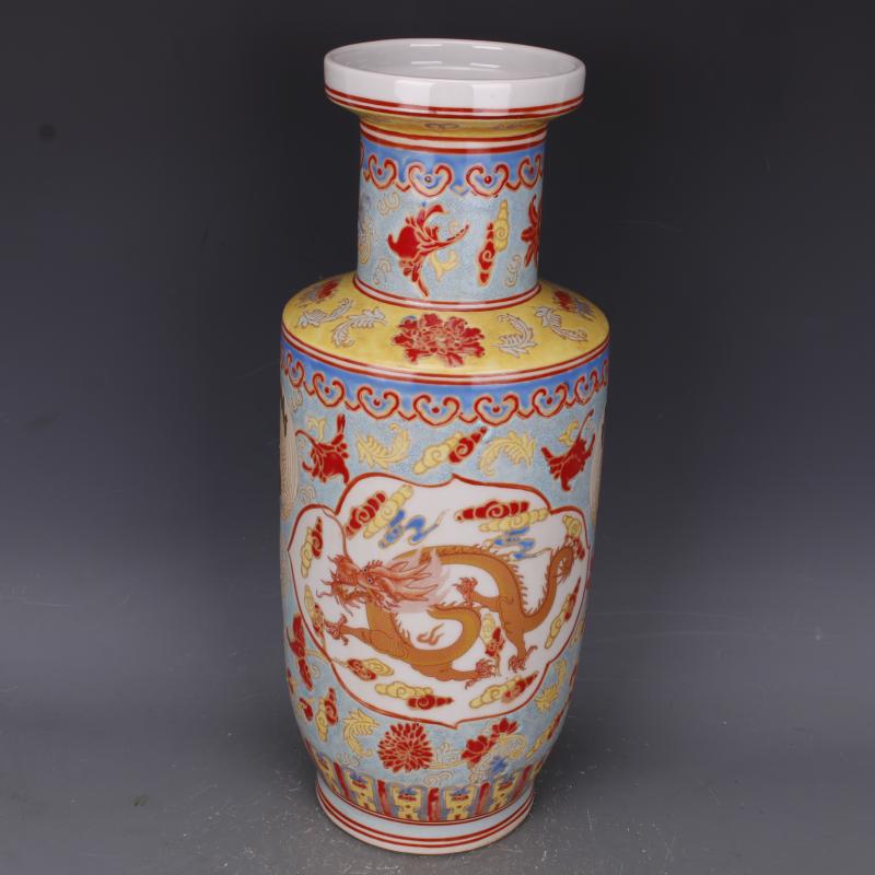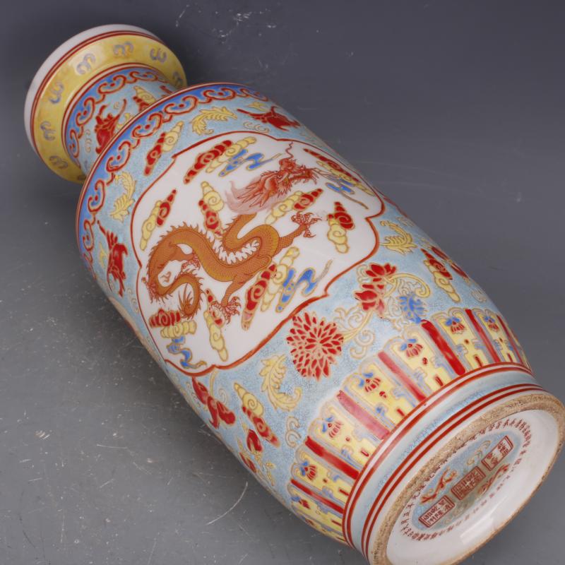 清乾隆粉彩夜光瓷云龍紋福壽棒槌瓶仿古老貨瓷器家居擺件古玩收藏1入