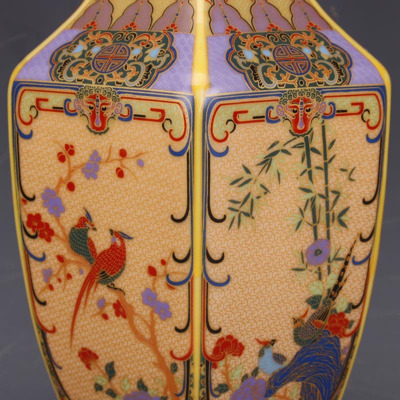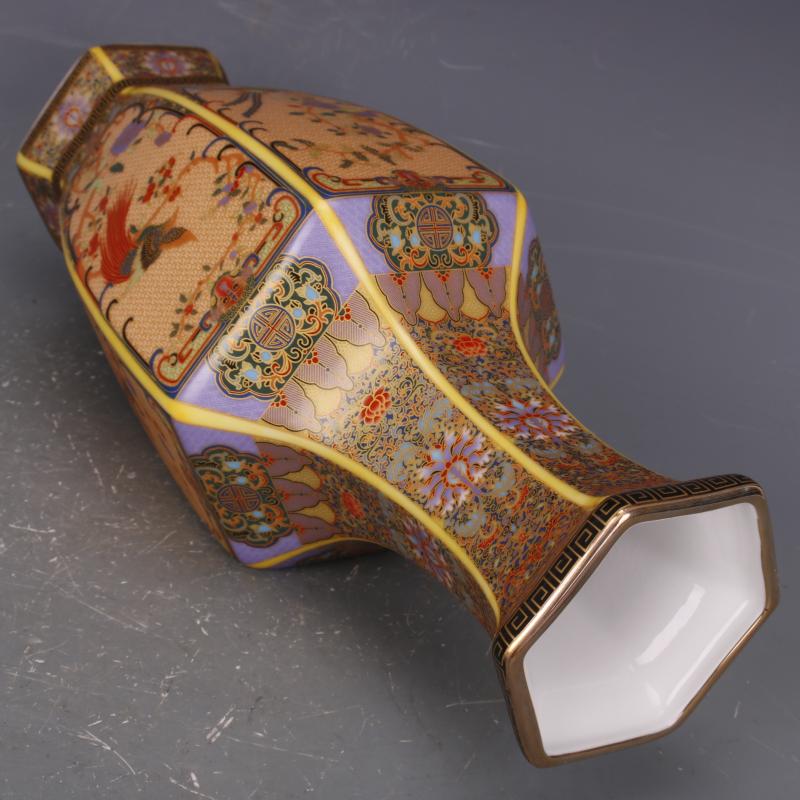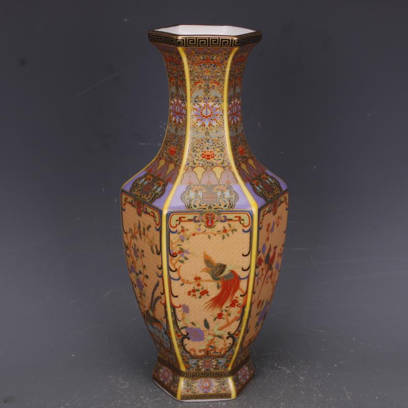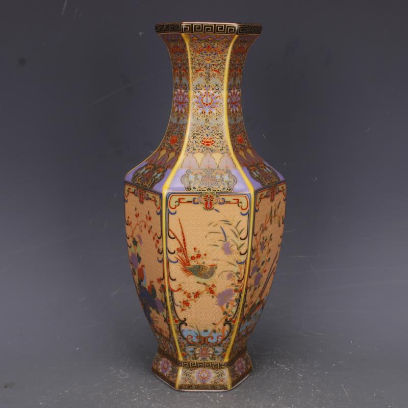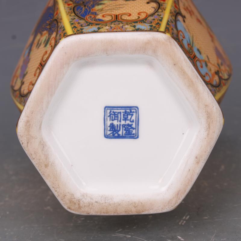 清乾隆琺瑯彩花鳥六方賞瓶仿古工藝品瓷器家居中式擺件古董古玩1入