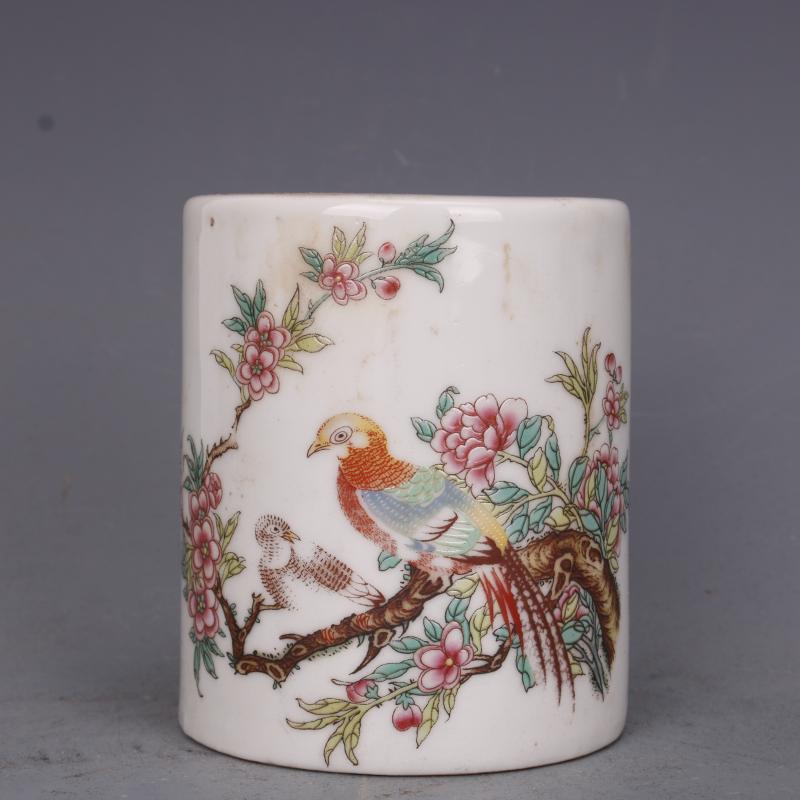 清乾隆粉彩花鳥刻字印章仿古老貨瓷器家居復古裝飾擺件古玩收藏1入