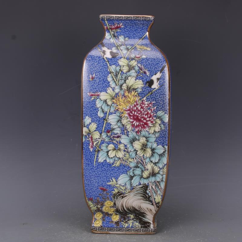 清乾隆描金琺瑯彩花鳥四方瓶仿古鑲器工藝品瓷器家居擺件古玩收藏1入