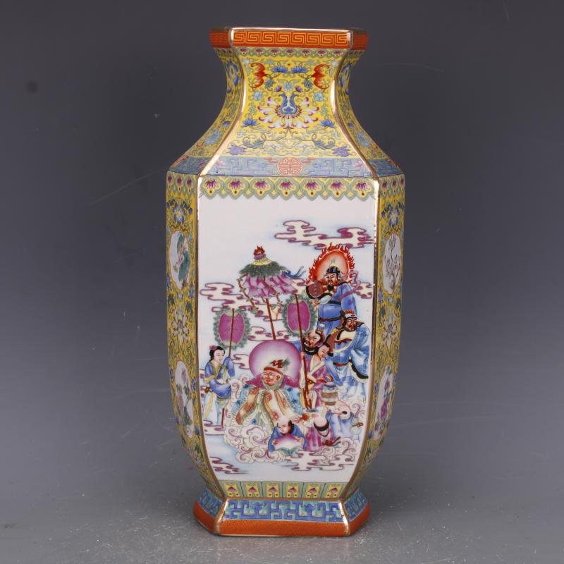 清乾隆描金琺瑯彩人物花紋扁瓶仿古工藝品瓷器家居中式老古玩擺件1入