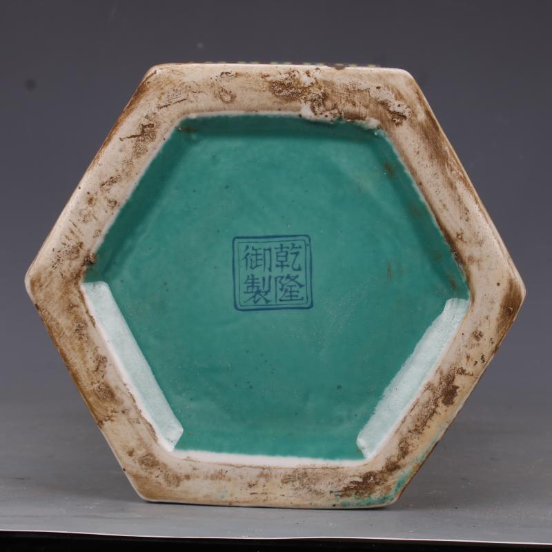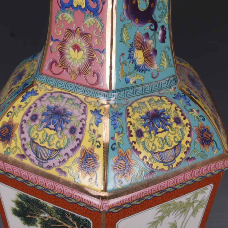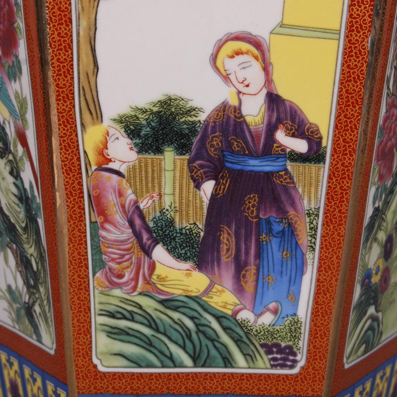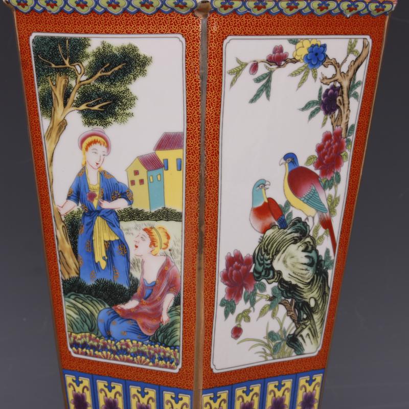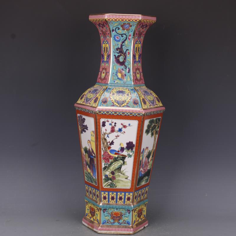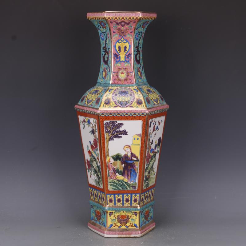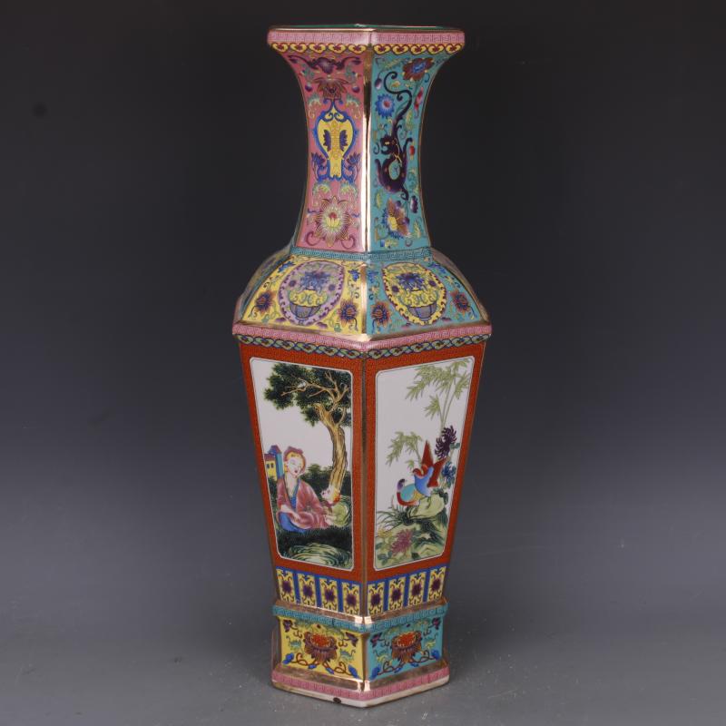 清乾隆描金琺瑯彩人物花紋六方賞瓶仿古瓷器家居中式擺件古玩收藏1入