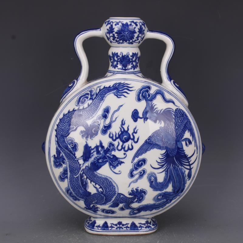 清乾隆青花穿花龍鳳如意抱月瓶手繪仿古工藝瓷器家居中式古玩擺件1入