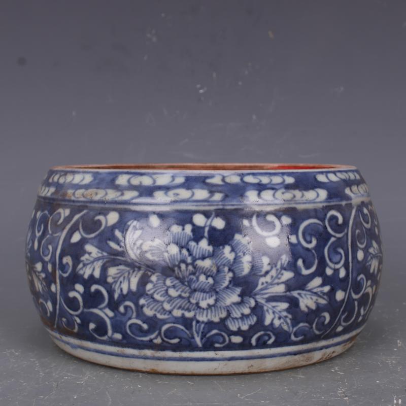 清康熙藍地青花留白花紋硯臺手工仿古老貨瓷器家居文房古玩擺件1入