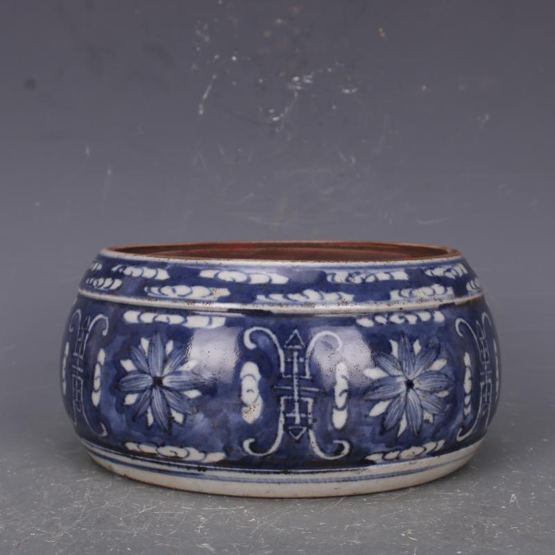 清康熙藍地青花留白花紋壽字硯臺手繪仿古老貨文房擺件古玩瓷器1入