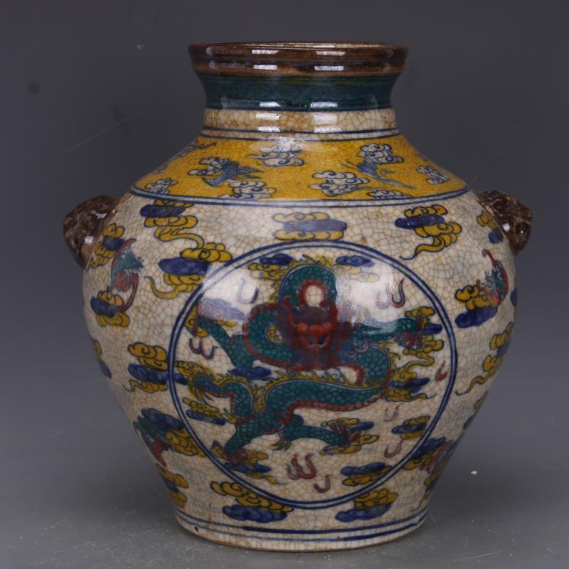 [3]清乾隆青花五彩開光龍紋狗頭罐手繪仿古老貨瓷器家居擺件古董古玩1入
