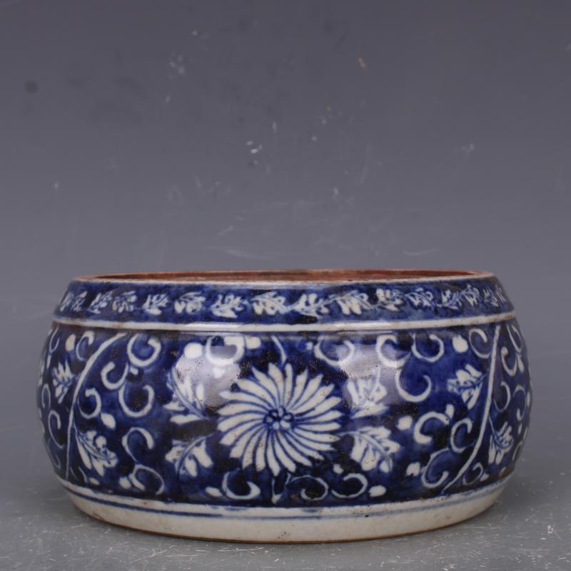 清康熙藍地青花留白花紋硯臺手工仿古老貨瓷器家居文房古玩擺件1入