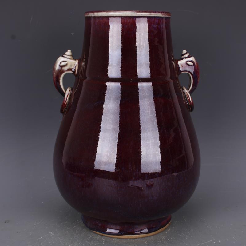 清雍正郎紅釉象鼻尊福筒仿古老貨瓷器家居擺件古董古玩老貨收藏1入