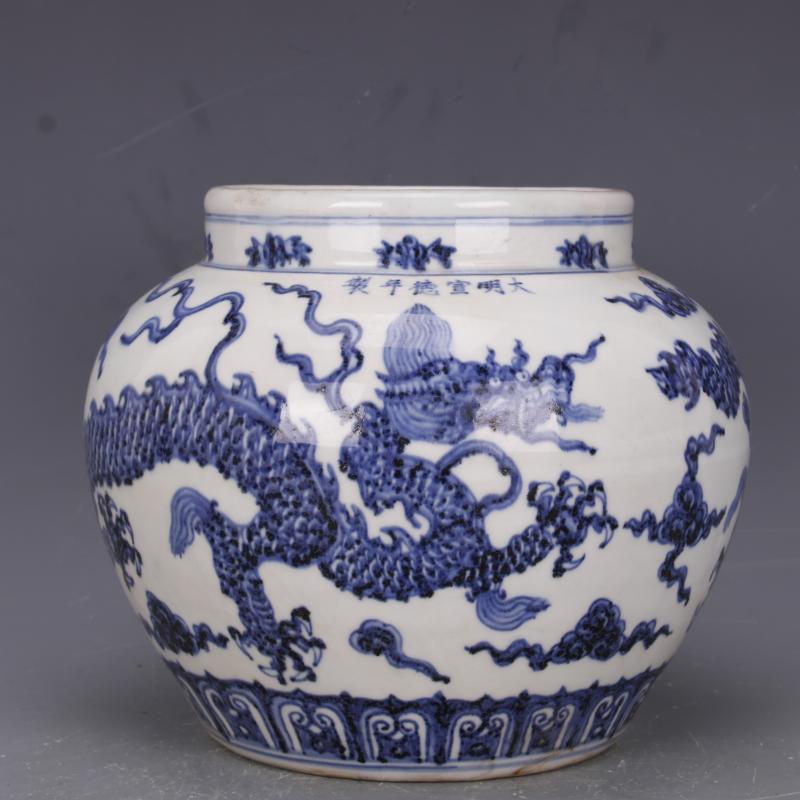 [2]明宣德青花云龍紋罐純手工手繪仿古老貨瓷器家居中式擺件古玩收藏1入