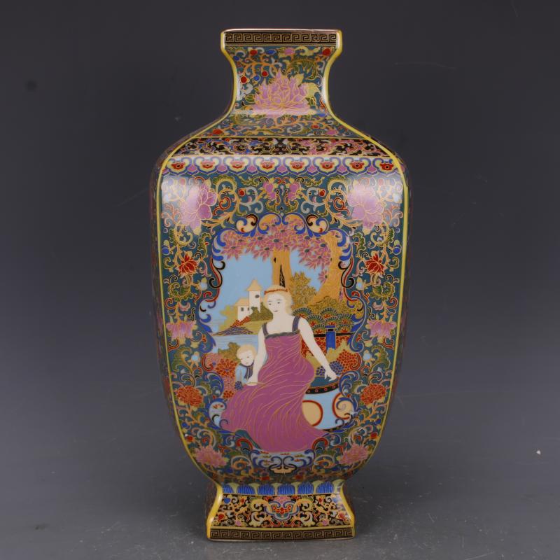 清乾隆琺瑯彩西方人物四方瓶仿古工藝品瓷器家居中式古董古玩擺件1入
