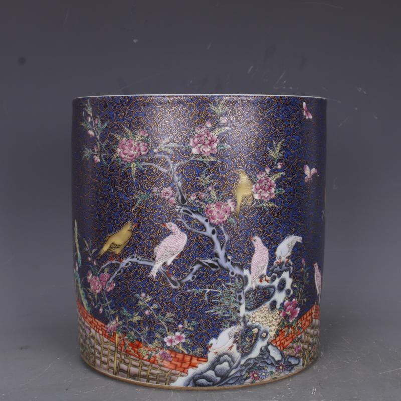 清乾隆掐絲琺瑯彩花鳥筆筒筆海仿古瓷器家居文房中式擺件古玩收藏1入