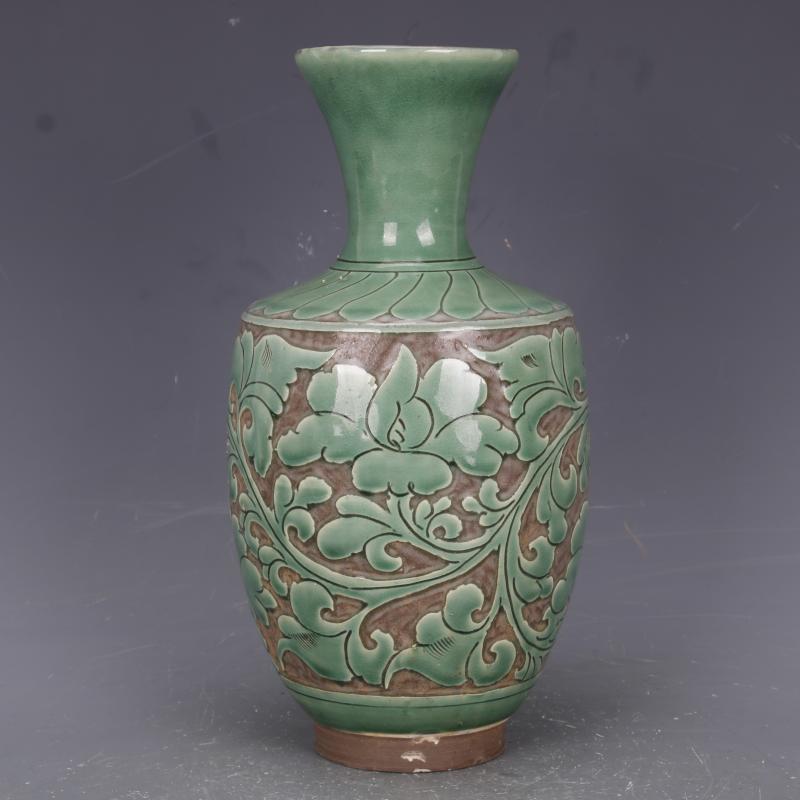 宋磁州窯刻纏枝花紋賞瓶仿古老貨瓷器家居中式裝飾擺件古玩收藏1入