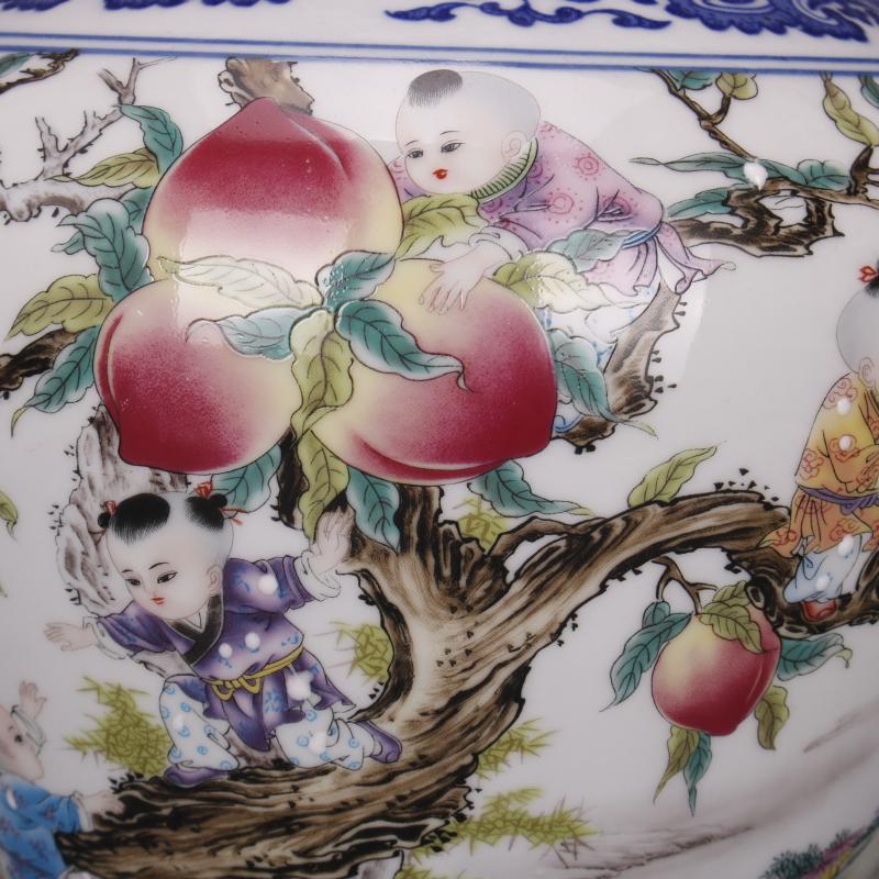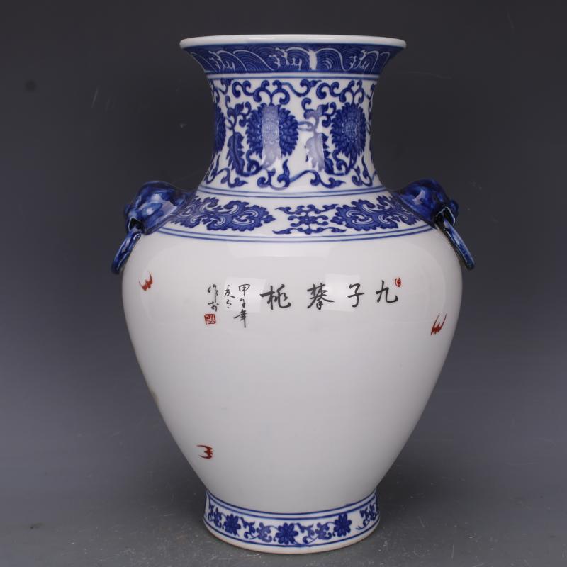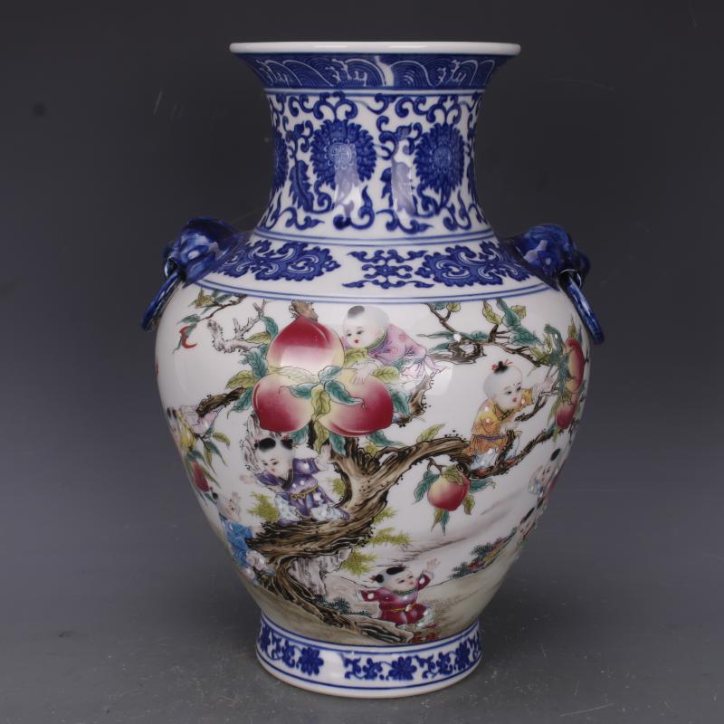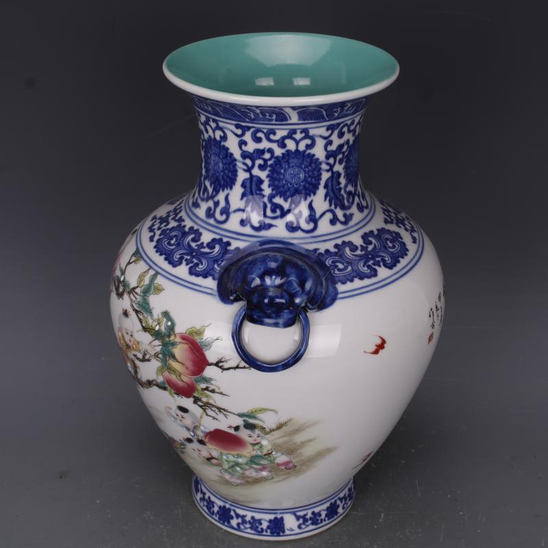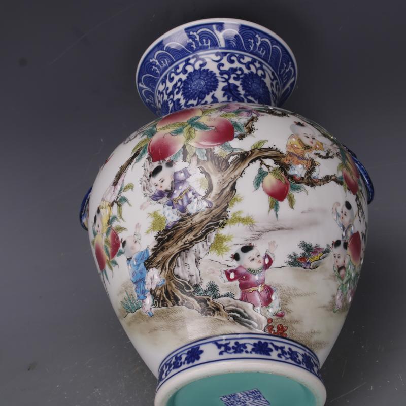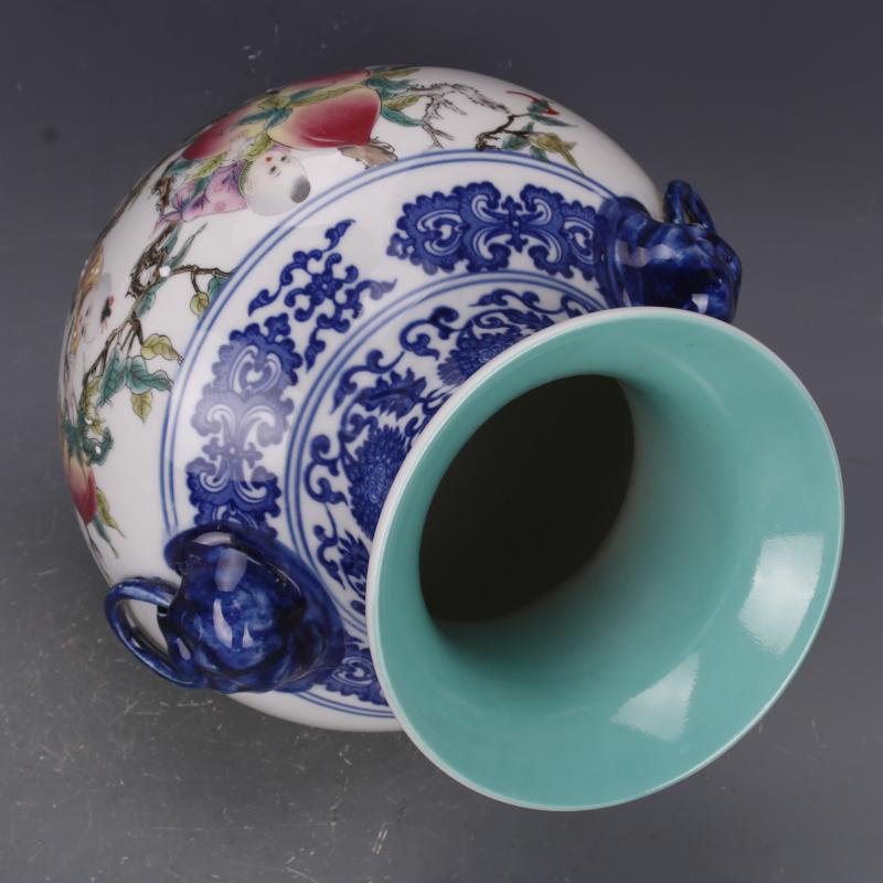 清乾隆青花斗彩九子攀桃花觚瓶仿古老貨瓷器家居中式擺件古玩收藏1入