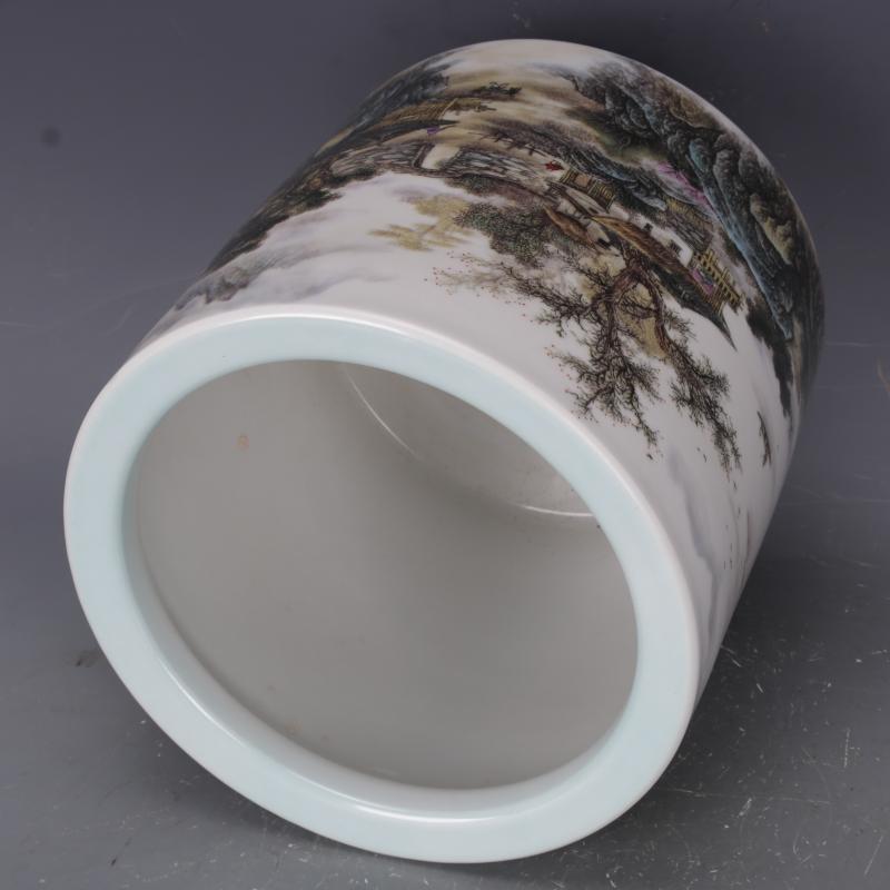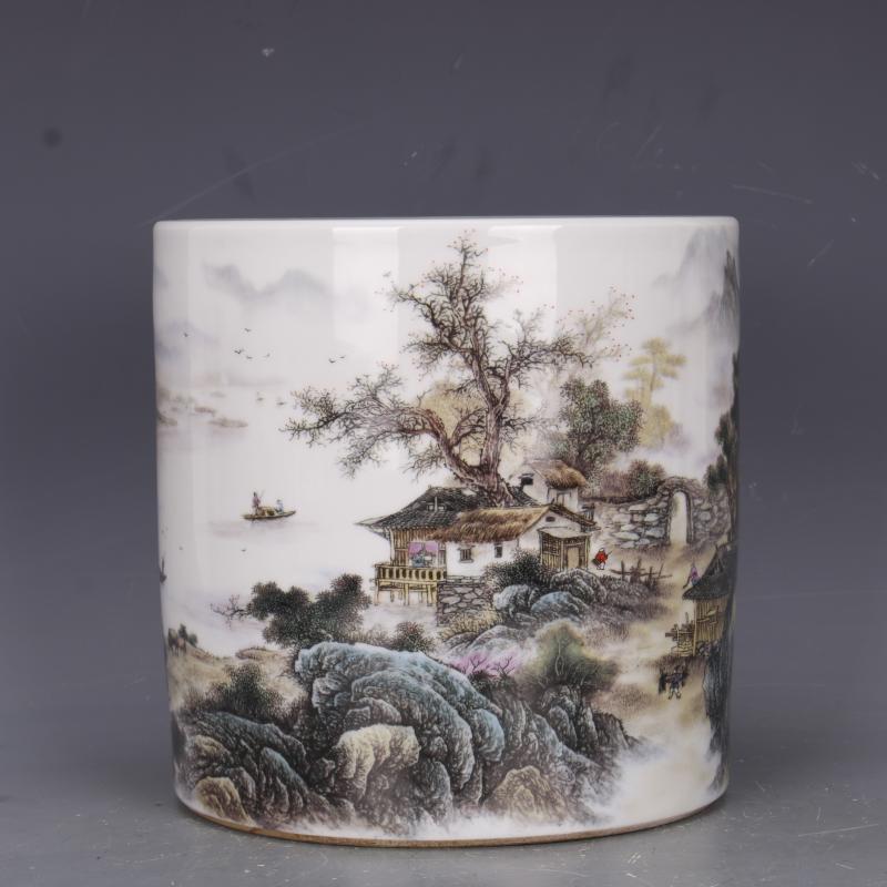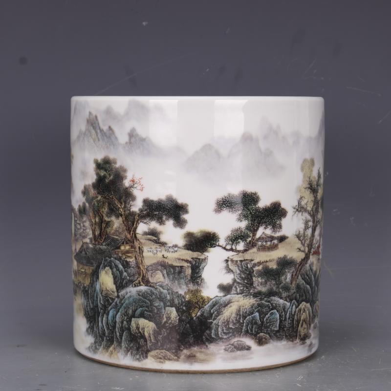 清乾隆琺瑯彩人物山水筆筒筆海仿古瓷器家居文房中式擺件古玩收藏1入