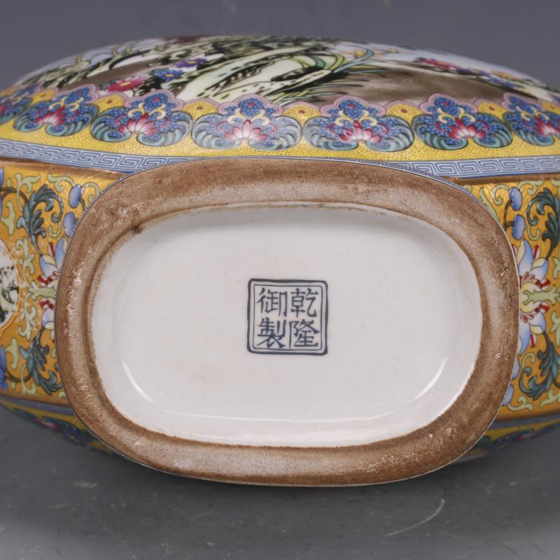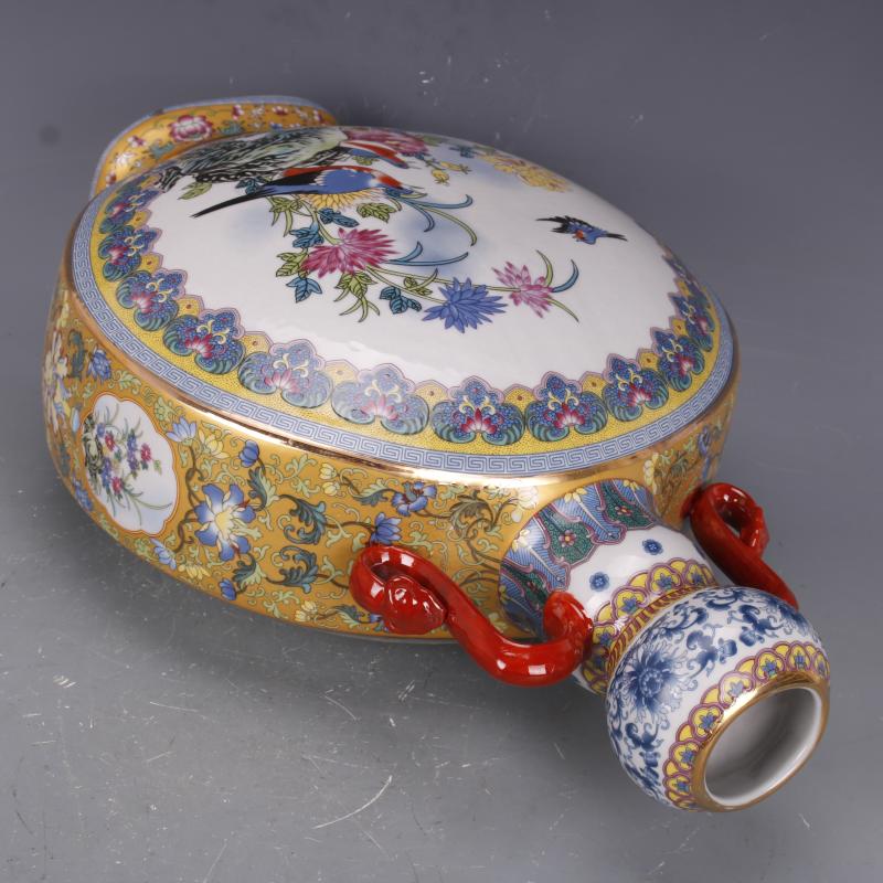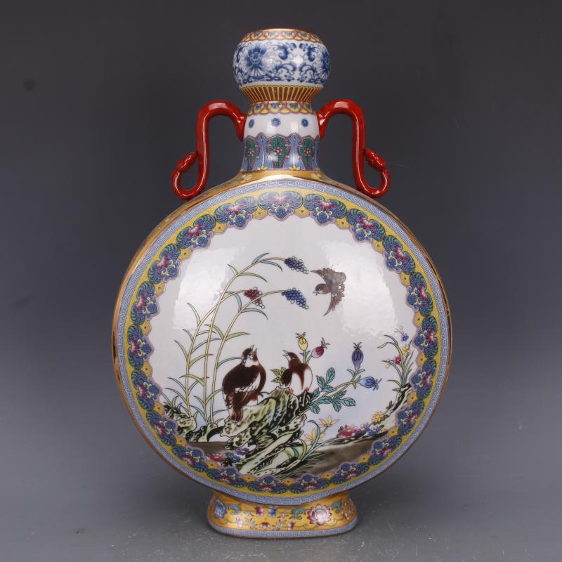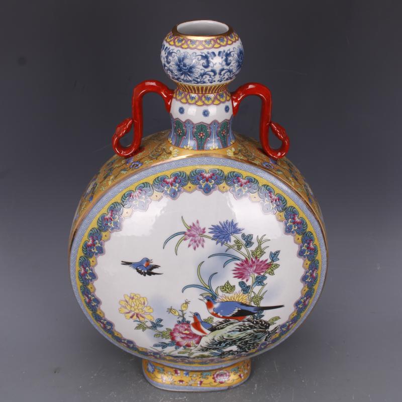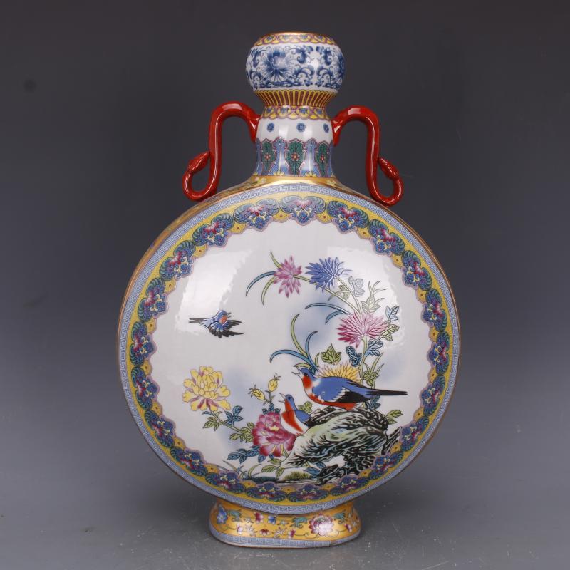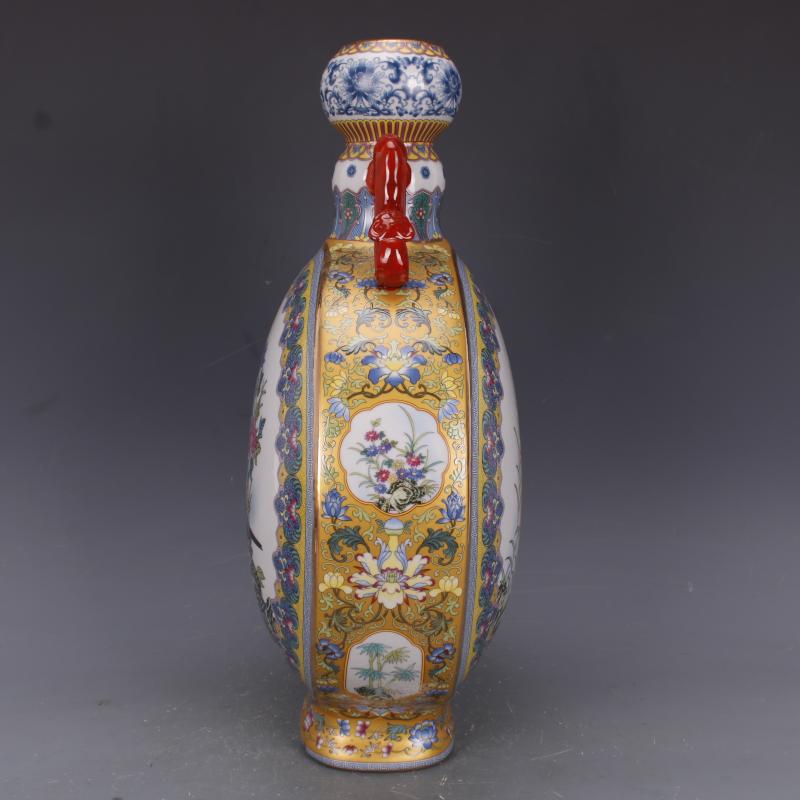 清乾隆描金琺瑯彩如意抱月扁瓶仿古老貨瓷器家居中式古董古玩擺件1入