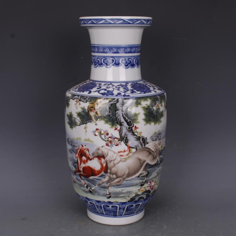 清乾隆青花斗彩動物紋棒槌瓶仿古老貨瓷器家居中式擺件古玩收藏1入